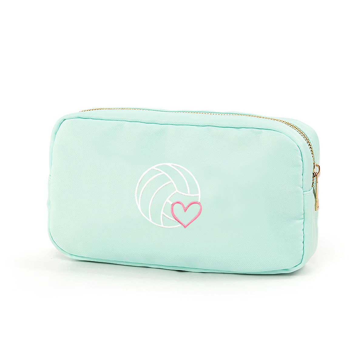Perfect for keeping all of your little things organized, this Accessory Bag features a roomy interior with a zipper closure. 9.5"L x 2"W x 5"H Water Resistant Twill Nylon Preset Embroidery Design Interior Lining Gold Toned Metal Hardware Zipper Closure