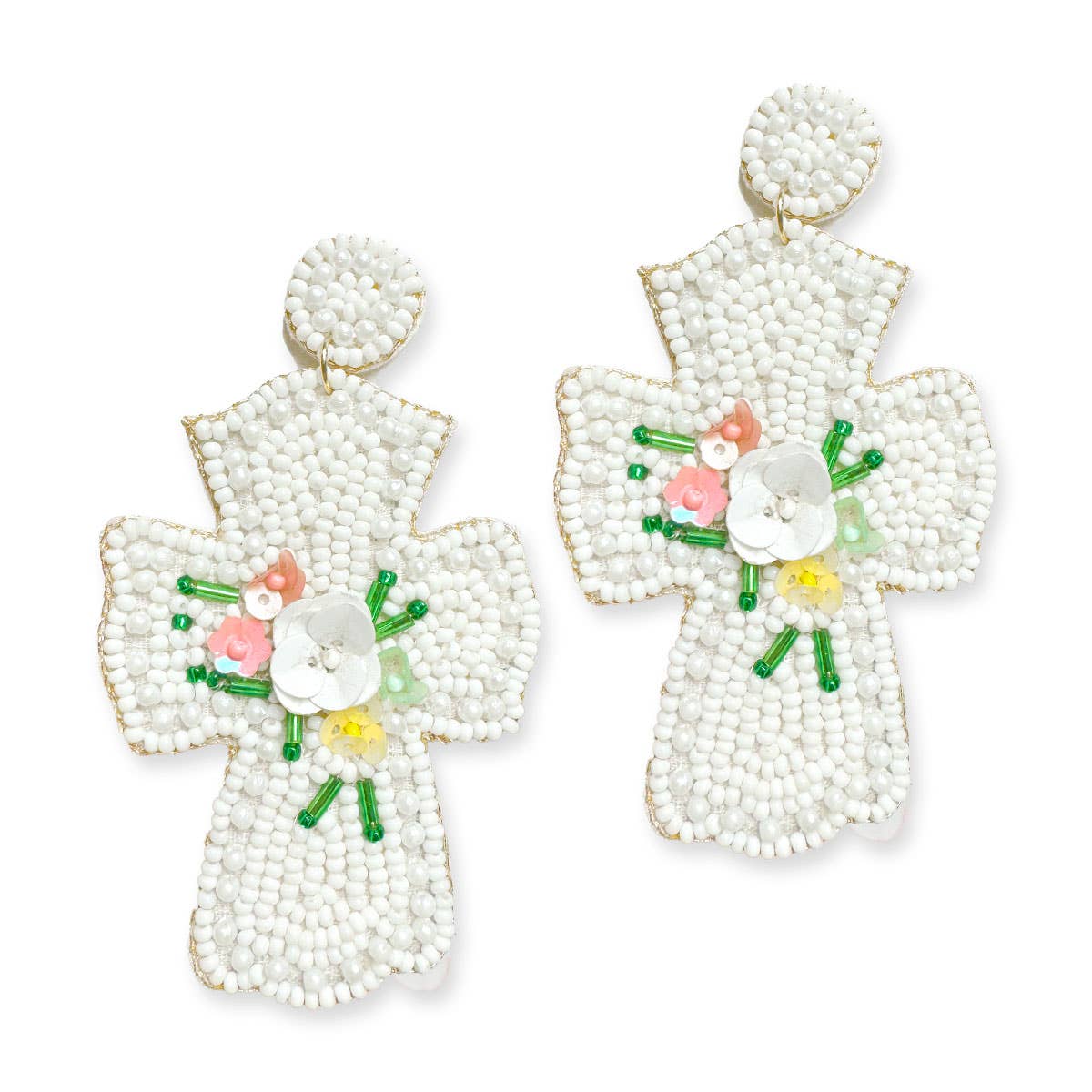 3.25” H Beaded with Felt Backing Sequin Accents Post Earrings