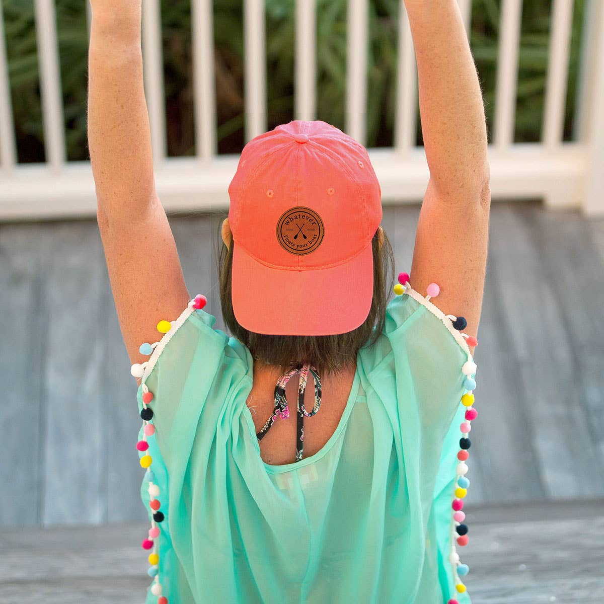 Perfect for a day on the lake, this cap features a fun design and adjustable clasp for the perfect fit! Embossed Leather Patch Approximately 19.5" - 22.5" Around the Head Soft Cotton Adjustable Metal Closure Designed and Engraved in the USA Coordinating Graphic Tops Available