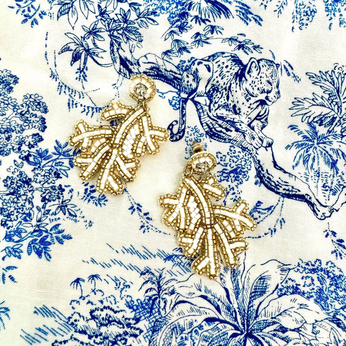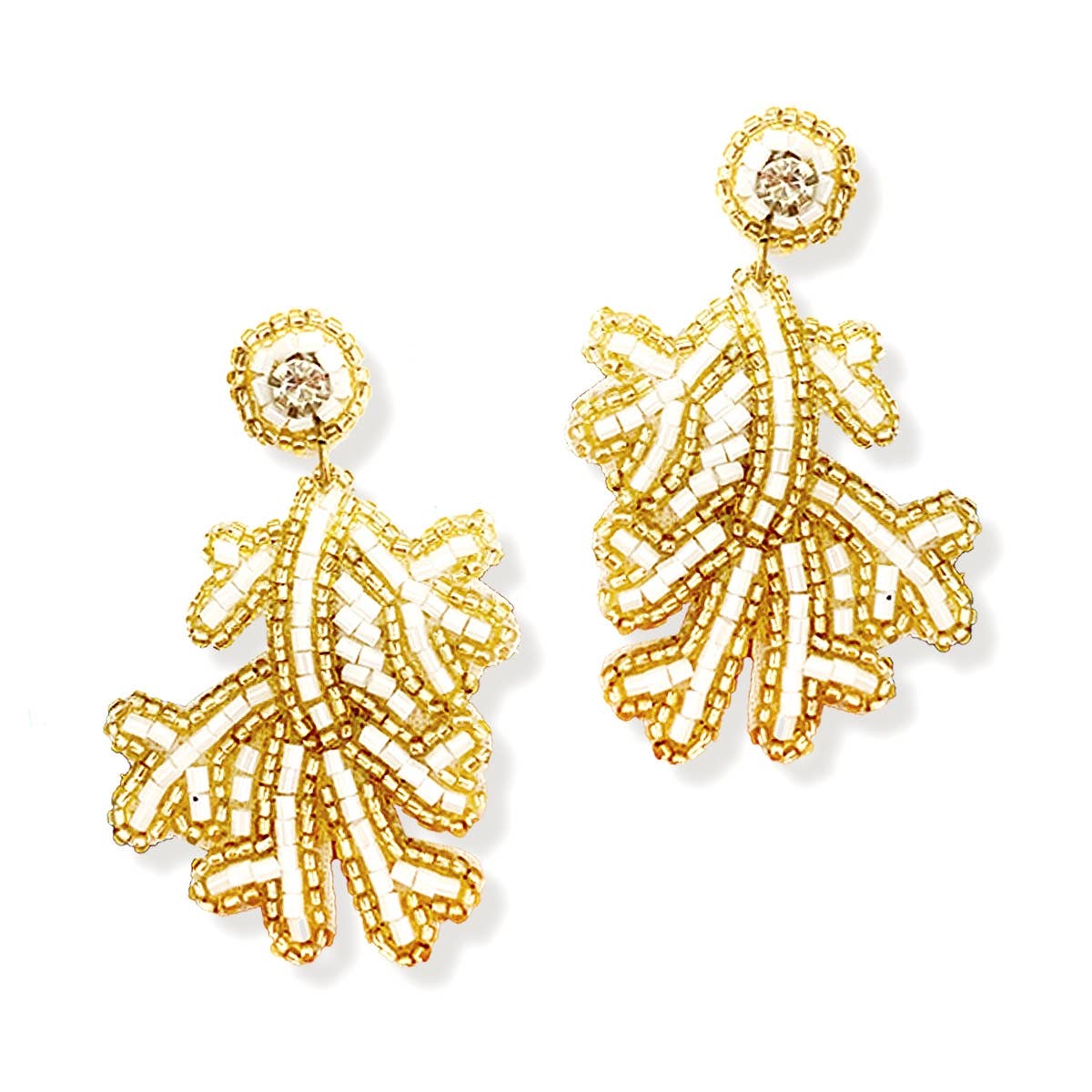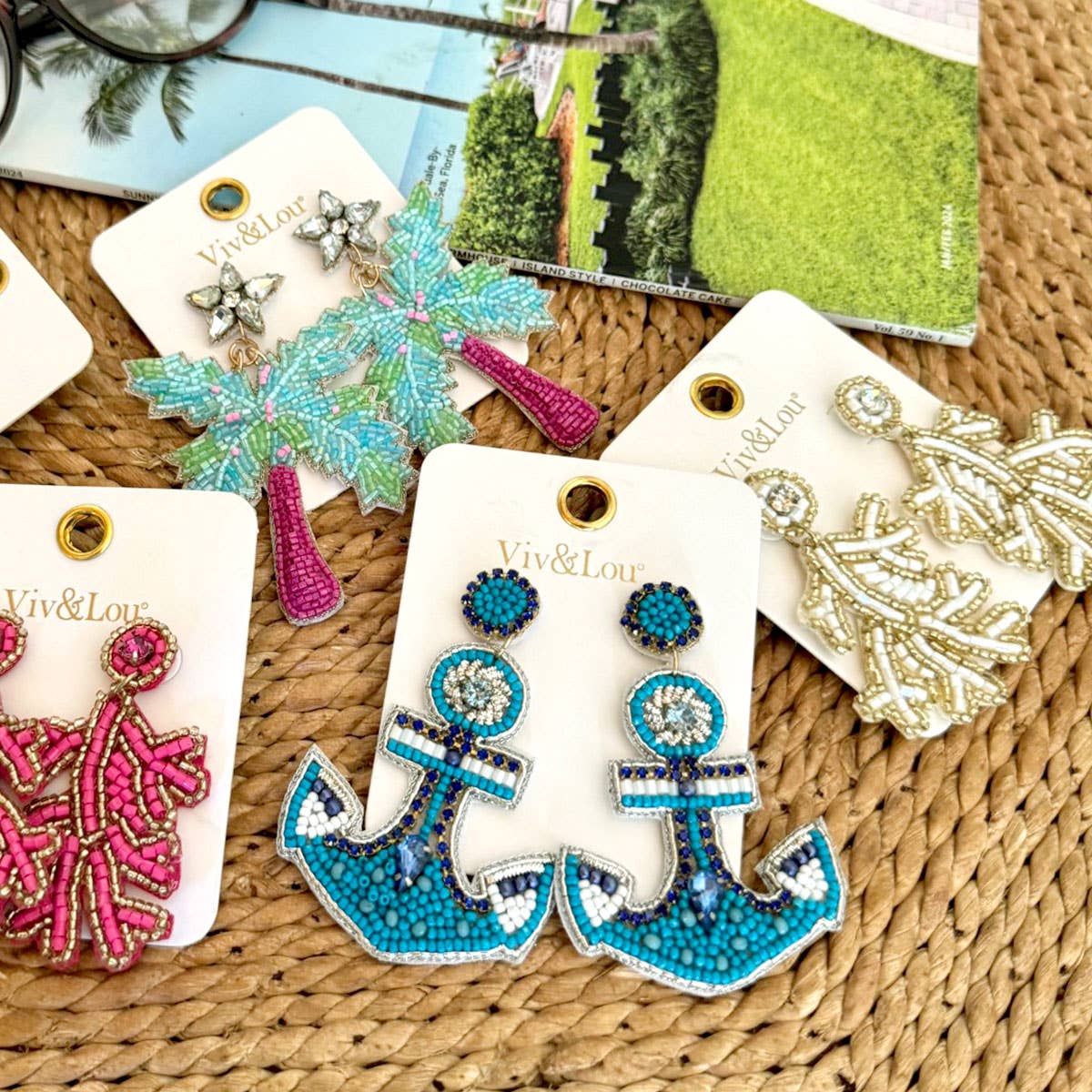 These vibrant coral reef inspired statement earrings feature a beaded design that is sure to add an eye-catching touch to any outfit! 2.5" H Beaded with Felt Backing Rhinestone Accents Post Style Back